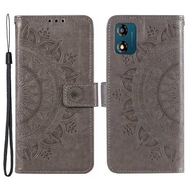 Skalo Motorola Moto E13 4G Mandala Plånboksfodral Grå