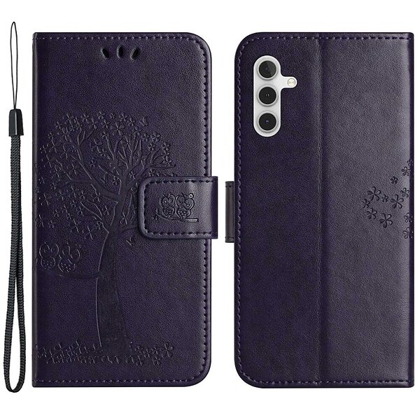 Skalo Samsung A14 4G/5G Owl Tree Plånboksfodral Mörklila