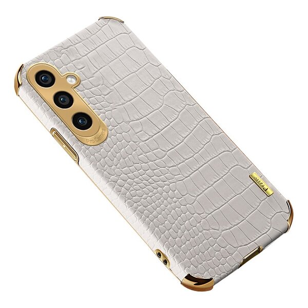 Skalo Samsung S23 FE Krokodil Guldkant Skal Vit