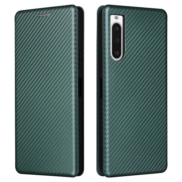 Skalo Sony Xperia 10 V Carbon Fiber Plånboksfodral Grön