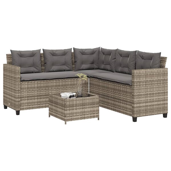 vidaXL Trädgårdssoffa med bord och dynor L-formad grå konstrotting 369041