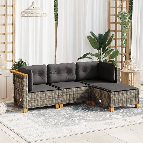vidaXL Trädgårdssoffset med dynor 4 delar konstrotting grå 3261780
