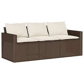 vidaXL Trädgårdssoffa 3-sits med dynor konstrotting brun 366342