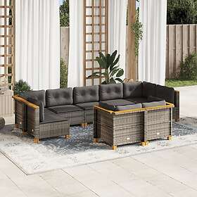 vidaXL Loungegrupp för trädgården m dynor 9 delar grå konstrotting 3261990