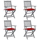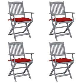 vidaXL Hopfällbara trädgårdsstolar med dynor 4 st massivt akaciaträ 3064530