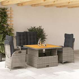 vidaXL Matgrupp för trädgården med dynor 4 delar konstrottning grå 3277464