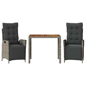 vidaXL Matgrupp för trädgården med dynor 3 delar konstrottning grå 3213344
