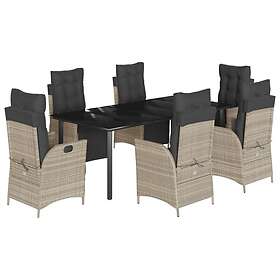 vidaXL Matgrupp för trädgården med dynor 7 delar ljusgrå konstrotting 3213474