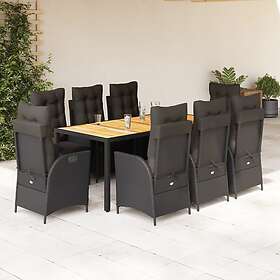 vidaXL Matgrupp för trädgården med dynor 9 delar svart konstrottning 3213343