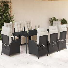 vidaXL Matgrupp för trädgården med dynor 9 delar svart konstrottning 3213391