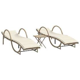 vidaXL Solsängar 2 st med bord beige konstrotting 368266