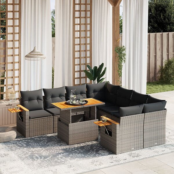 vidaXL Loungegrupp för trädgården m dynor 9 delar grå konstrotting 3273447