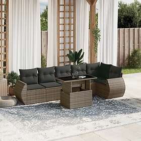 vidaXL Soffgrupp för trädgården med dynor 7 delar grå konstrotting 3271214