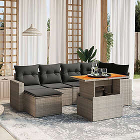 vidaXL Soffgrupp för trädgården med dynor 7 delar grå konstrotting 3271417