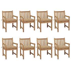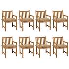 vidaXL Trädgårdsstolar 8 st med beige dynor massiv teak 3073076