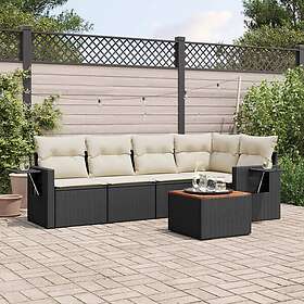 vidaXL Loungegrupp med dynor 6 delar svart konstrotting 3224551