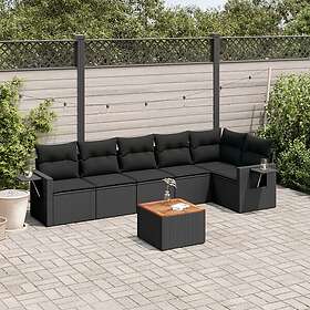 vidaXL Soffgrupp för trädgården med dynor 7 delar svart konstrotting 3224571