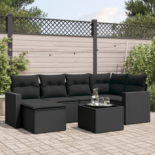 vidaXL Soffgrupp för trädgården med dynor 7 delar svart konstrotting 3251602