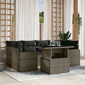 vidaXL Soffgrupp för trädgården med dynor 7 delar grå konstrotting 3267130