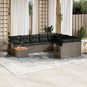 vidaXL Soffgrupp för trädgården med dynor 10 delar grå konstrotting 3224730