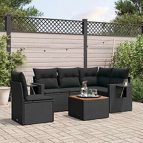 vidaXL Loungegrupp med dynor 6 delar svart konstrotting 3251233
