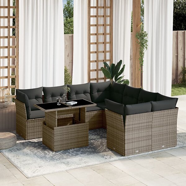 vidaXL Loungegrupp för trädgården m dynor 9 delar grå konstrotting 3266430