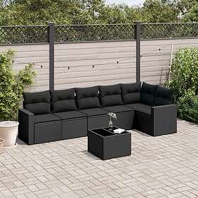 vidaXL Soffgrupp för trädgården med dynor 7 delar svart konstrotting 3251332