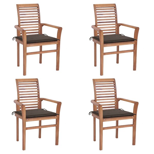 vidaXL Matstolar 4 st med taupe dynor massiv teak 3062630