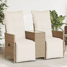 vidaXL Trädgårdssoffa fällbar 2-sits med bord beige konstrotting 365718
