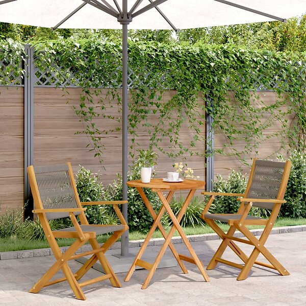 vidaXL Caféset 3 delar grå polypropen och massivt trä 3281794