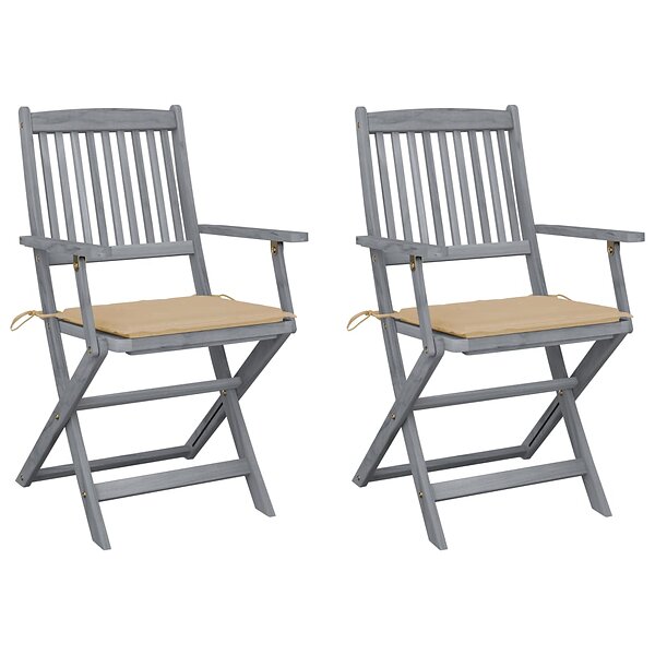 vidaXL Hopfällbara trädgårdsstolar med dynor 2 st massivt akaciaträ 3064485