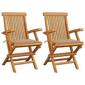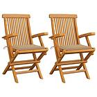 vidaXL Trädgårdsstolar med beige dynor 2 st massivt teakträ 3062490