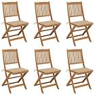 vidaXL Hopfällbara trädgårdsstolar med dynor 6 st massivt akaciaträ 3074997
