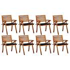 vidaXL Trädgårdsstolar med dynor 8 st massivt akaciaträ 3075208