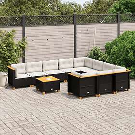 vidaXL Loungegrupp för trädgården m. dynor 11 delar konstrotting svart 3262037