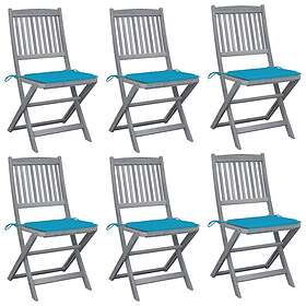 vidaXL Foldbare havestole med hynder Sæt med 6 massivt akacietræ 3065444