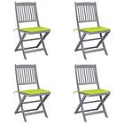 vidaXL Hopfällbara trädgårdsstolar med dynor 4 st massivt akaciaträ 3064574