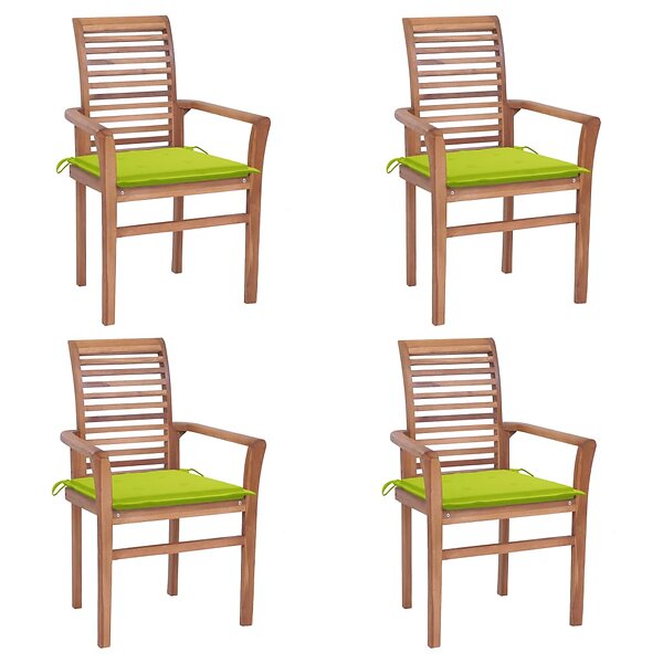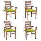 vidaXL Matstolar 4 st med ljusgröna dynor massiv teak 3062633