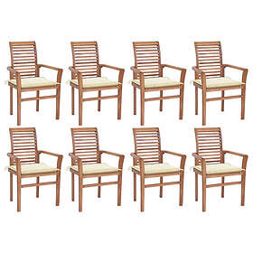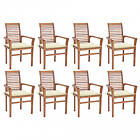 vidaXL Matstolar 8 st med gräddvita dynor massiv teak 3072975