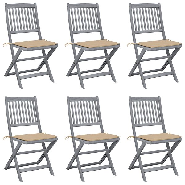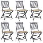 vidaXL Hopfällbara trädgårdsstolar med dynor 6 st massivt akaciaträ 3065437