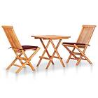 vidaXL Caféset 3 delar med vinröda dynor massiv teak 3063234