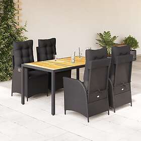 vidaXL Matgrupp för trädgården med dynor 5 delar svart konstrottning 3213097