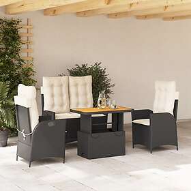 vidaXL Matgrupp för trädgården med dynor 4 delar svart konstrottning 3277443