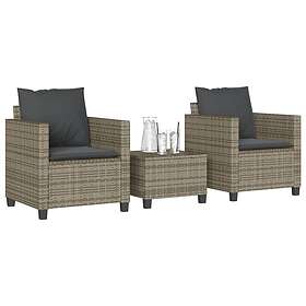 vidaXL Caféset med dynor 3 delar grå konstrotting 4003898