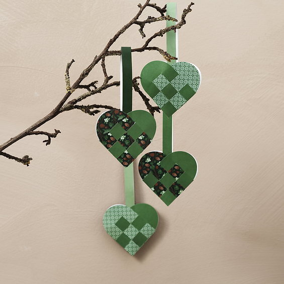 Panduro Fläta julhjärtan pappershjärtan 8-pack, grönt & mönstrat tema