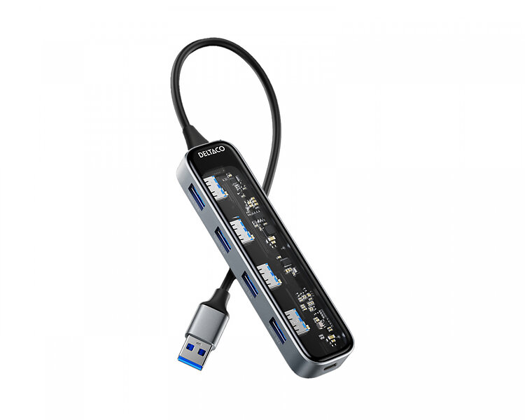 Deltaco Transparent USB Dockningsstation 5 portar