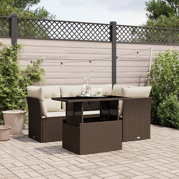 vidaXL Loungegrupp för trädgården med dynor 5 delar brun konstrotting 3266563