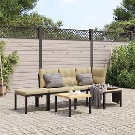 vidaXL Trädgårdsbänkar med dynor 3 delar svart pulverlackerat stål 3283641