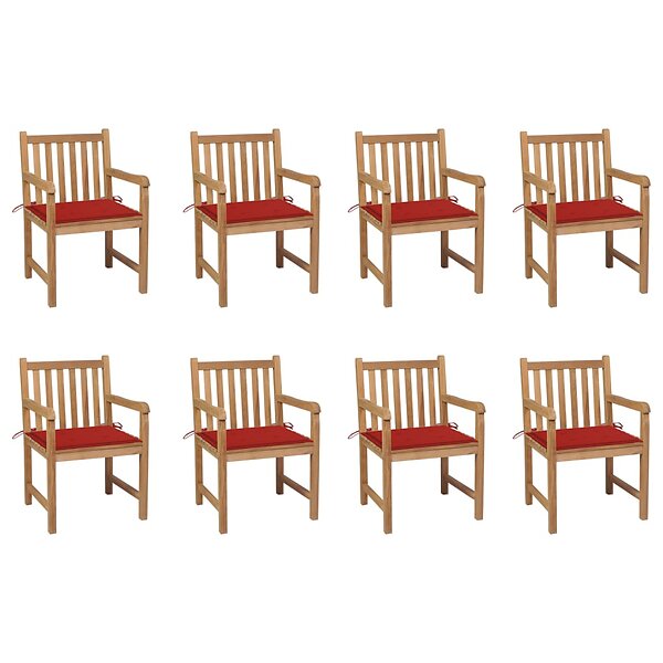 vidaXL Trädgårdsstolar 8 st med röda dynor massiv teak 3073064