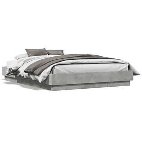 vidaXL Sängram med LEDs betonggrå 135x190 cm